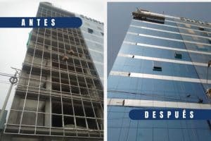 En Corporación Lau SAC. , ayudamos a una empresa en Comas a transformar por completo la imagen de su edificio instalando un muro cortina tipo Stick.